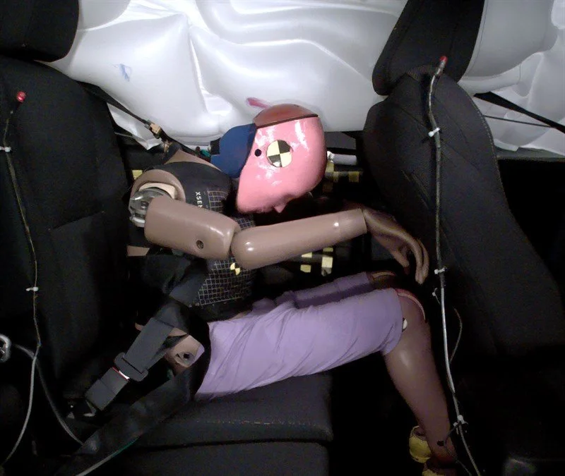 The rear passenger crash test dummy in the updated moderate overlap crash test